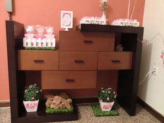 Depois de passar pela entrada, os convidados deparavam-se com o cantinho dos doces e brindes